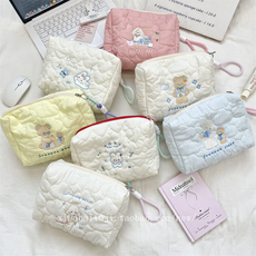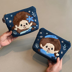 日系卡通萌奇奇毛绒刺绣手拿包可爱化妆包便携零钱耳机口红收纳包
