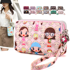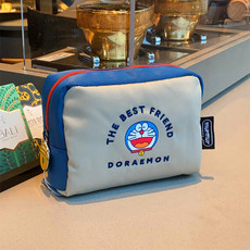 日系周边新款可爱蓝胖子手拿化妆包卡通印花小巧时尚收纳袋杂物包