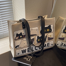 可爱猫咪帆布包包女2026新款休闲上课单肩手提包大容量通勤托特包