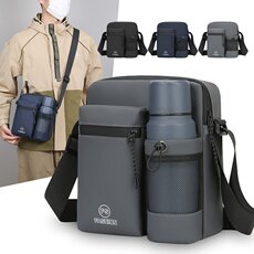斜挎包男大容量中老年运动旅游装水杯轻便斜跨背包男士挎包单肩包