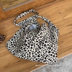 跟着白姐买~韩国爱豆同款豹纹帆布包 大容量垂感单肩包斜跨包布包