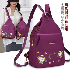 2024新款韩版牛津布双肩包女百搭刺绣女士两用胸包户外旅游小背包