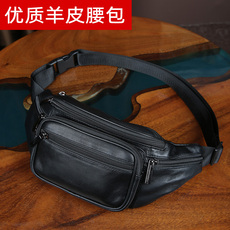 简约复古男士疯马皮腰包头层牛皮斜挎包真皮户外运动骑行男包胸包