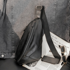 新款男士真皮斜挎包男款胸包头层牛皮胸前背包男纯皮单肩包胸包