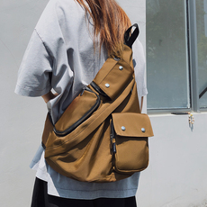 潮牌骑行斜挎包男士胸包大容量日系简约单肩包背包女休闲运动腰包