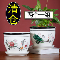 陶瓷花盆特大号家用多肉室内简约清仓绿萝客厅吊兰带托盘特价批发