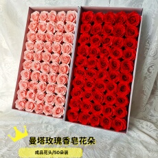 仿真花氛围感逼真红色曼塔玫瑰香皂花50朵盒装粉色手工皂花永生花