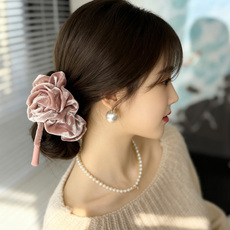 【氛围玫瑰发圈】韩国丝绒立体风格布艺抓夹大号后脑勺盘头绳秋冬