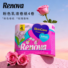 RENOVA葡萄牙进口粉色乳液卷筒纸4卷玫瑰乳液卫生纸轻奢体验厕纸