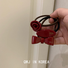 韩国进口精致发圈法式复古温柔缎面肠圈玫瑰花山茶花浪漫超仙发绳