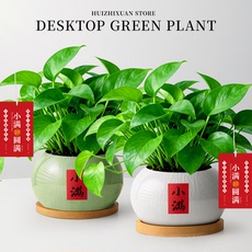 室内绿植小盆栽绿萝文竹发财树含盆净化空气好养活办公桌面吉利红