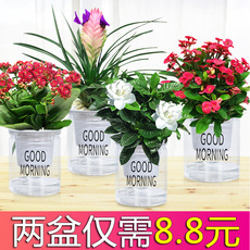 桌面盆栽栀子花绿萝箩发财树绿植办公室花卉水培多肉植物好养易活