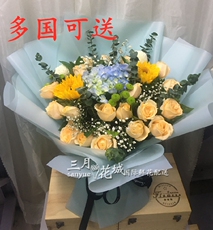 M多地可送香槟玫瑰向日葵混搭越南河内鲜花泰国送花金边悉尼韩国