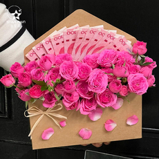 情人节第一封情书信封花束包装盒鲜花花盒礼盒花艺有钱花diy材料