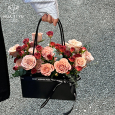 长方形黑色花艺手提袋卡布奇诺玫瑰鲜花花束插花花盒礼盒包装盒