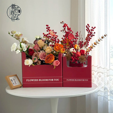 高档手提圆形鲜花水果礼盒入冬四件套花束开窗空盒花盒插花包装盒