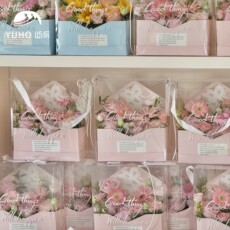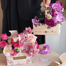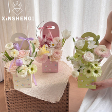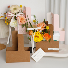 手提咖啡花盒奶茶鲜花包装礼盒花艺插花材料女神节手提花篮