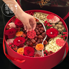 创意礼物diy手工包装材料猪蹄鸡蛋面条鲜花早生贵子高档圆形礼盒