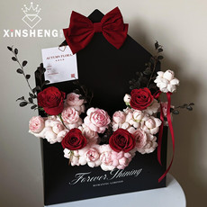 情人节新品心形防水鲜花包装礼盒水果花束插花盒花艺花店包装材料