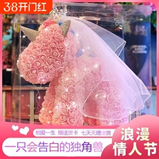 情人节玫瑰熊永生花香皂花礼盒生日礼物送女生闺蜜鲜花独角兽女神