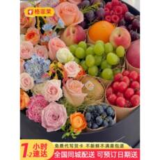 感恩节榴莲花束成品水果礼盒玫瑰鲜花速递同城广州配送老婆圣诞节