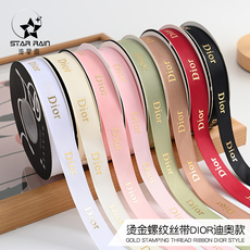 大牌LOGO英文烫金螺纹丝带鲜花花束礼物礼盒包装彩带绑带花艺缎带