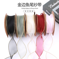 烘焙蛋糕装饰金边鱼尾纱丝带波浪鲜花包装纱带蛋糕盒礼盒绑带彩带