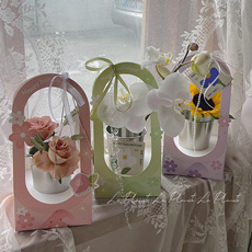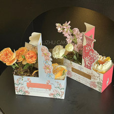 新款手提花盒鲜花包装礼盒插花盒手提花篮纸质盆栽绿植鲜花手提袋