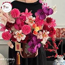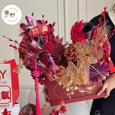 新年复古木质礼盒鲜花手提盒年宵花福桶插花桶蝴蝶兰盆栽花盒抱桶