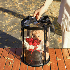 新款圆形抱抱桶透明生日蛋糕礼盒鲜花打包盒花束甜品伴手礼包装盒