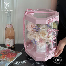 三八节方形PVC透明手提花盒鲜花包装折叠纸盒520花艺插花盒礼品盒