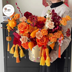 2026新款喜庆双把手花篮盒鲜花手提福桶盆栽礼盒花店玫瑰花包装盒