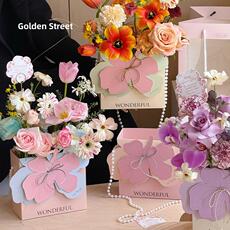 新款情人节鲜花花束包装礼盒花店资材手提袋伴手礼物包装手提花盒