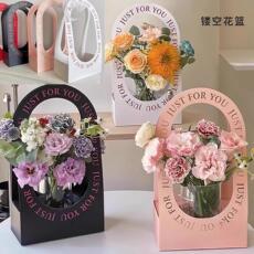 新款520鲜花手提袋包装礼盒纸质花篮diy花艺插花盒花束手提袋花盒