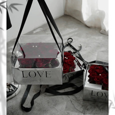 女神节日透明防水手提方形礼盒花袋鲜花包装手拎礼品袋花束插花盒