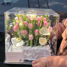 速发压克力手提花箱花盒透明x情A人节礼盒鲜花盒花艺包装花店用品