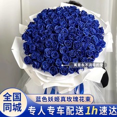 蓝色妖姬真玫瑰花束礼盒北京生日鲜花速递同城广州上海深圳配送店