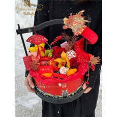 优艺 新中式八角盒年宵花抱抱桶新年福桶花盒国风插花盒礼盒
