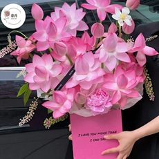 荷花花束花盒抱抱桶触感皮纹方盒简约英文花艺插花礼盒包装纸盒
