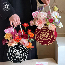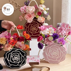 七夕立体玫瑰珍珠手提花盒花艺插花山茶花鲜花包装盒花束礼盒