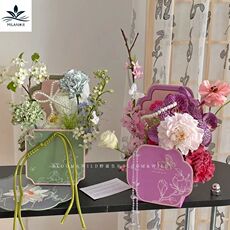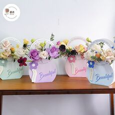 新款母亲节礼物花艺插花盒渐变系列手提盒花篮鲜花包装礼盒纸盒