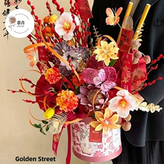 金色套二抱抱桶开业大麦花桶圆形花盒鲜花银柳插花桶年宵花礼盒