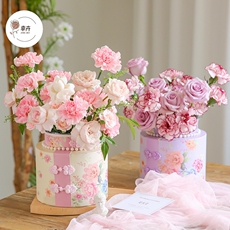 女神节快乐套二小圆桶鲜花束抱抱桶圆形插花盒diy礼盒可爱少女盒