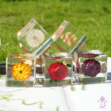 蒲公英标本立方体雏菊植物真花树脂摆件水晶滴胶成品永生花镇纸