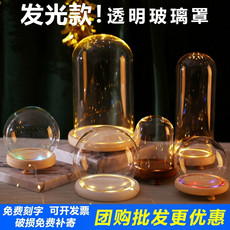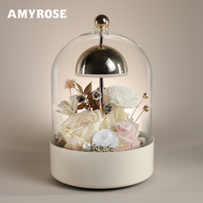 永生花铃兰花圣诞树玻璃罩玫瑰花积木手办盲盒人偶防尘罩带灯发光