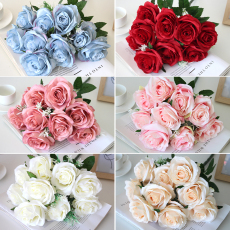仿真玫瑰花束永生花单枝塑料假花枝家居摆件客厅餐桌插花摆设装饰