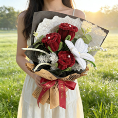 节日礼品手工编织钩织花束仿真永生花玫瑰花送女朋友闺蜜生日礼物
