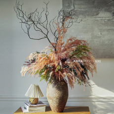 干花仿真花客厅落地假花梅花室内玄关装饰花永生花艺叶脉插花套装