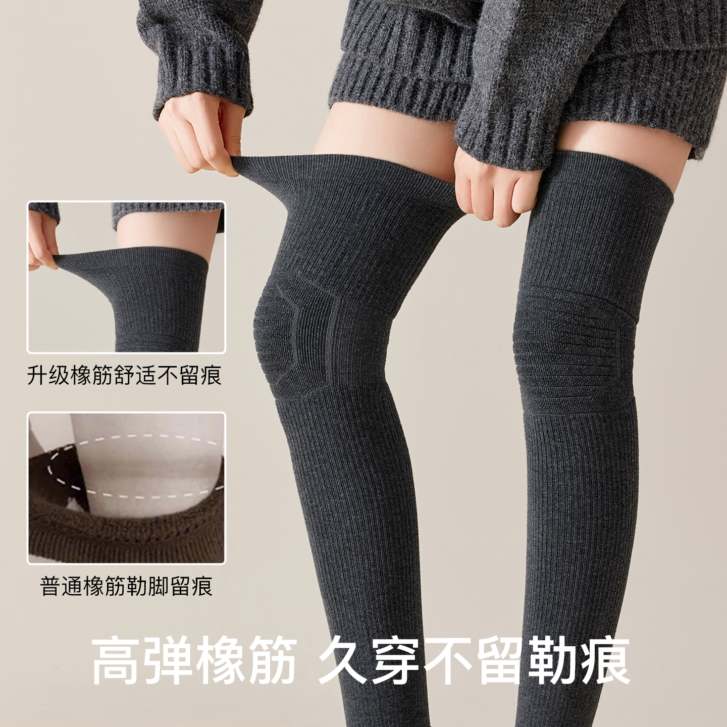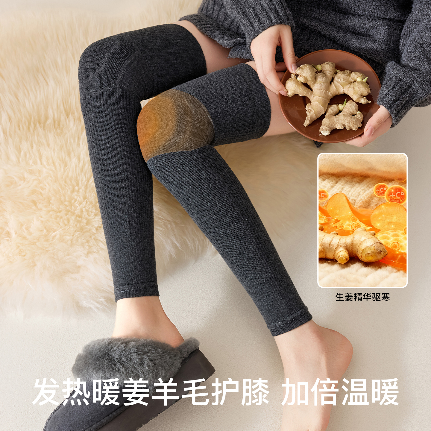 生姜羊毛护膝袜子女秋冬款加厚保暖防寒膝盖腿套防下滑过膝大腿袜