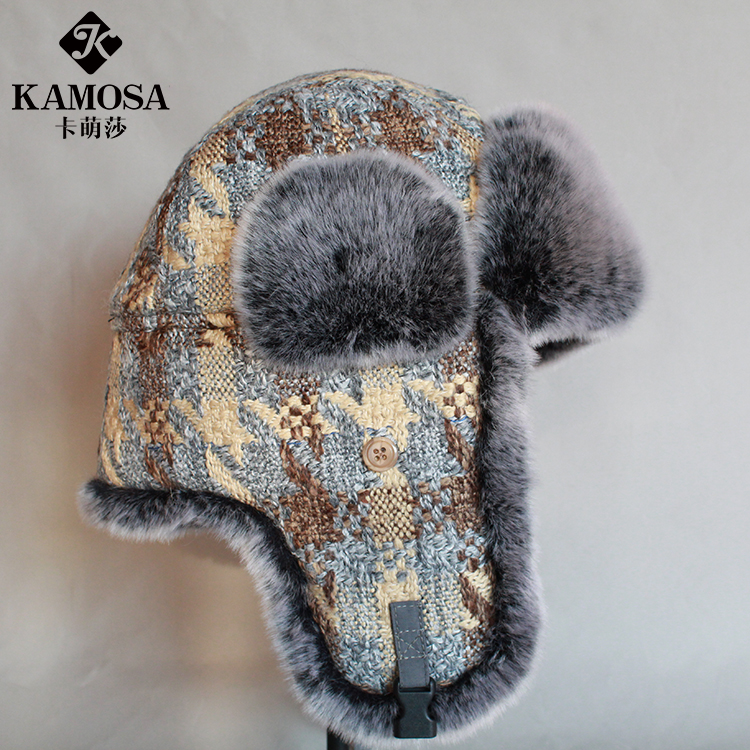 KAMOSA 韩版冬季滑雪护耳帽子男女潮毛呢加厚保暖雷锋帽东北棉帽